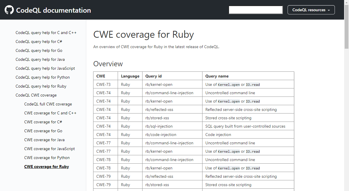 | For shorter queries that you can use as building blocks when writing your own queries, see the `example queries in the CodeQL repository <https://github.com/github/codeql/tree/main/ruby/ql/examples>`__. |