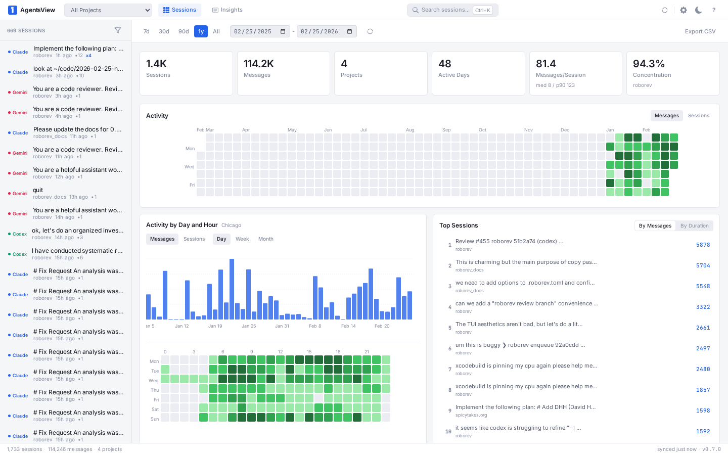 agentsview -no-browser # headless modeOn startup, agentsview discovers sessions from Claude Code, Codex,